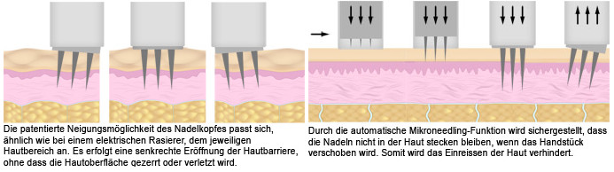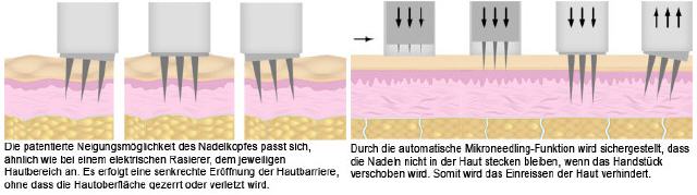 Microneedling ist minimalinvasiv, mit Nadelstichen bis 0.5mm wird die Haut angeregt und sehr
