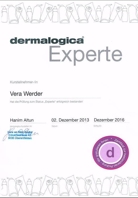 - Dermalogica «Expertin», Prüfung mit Diplom